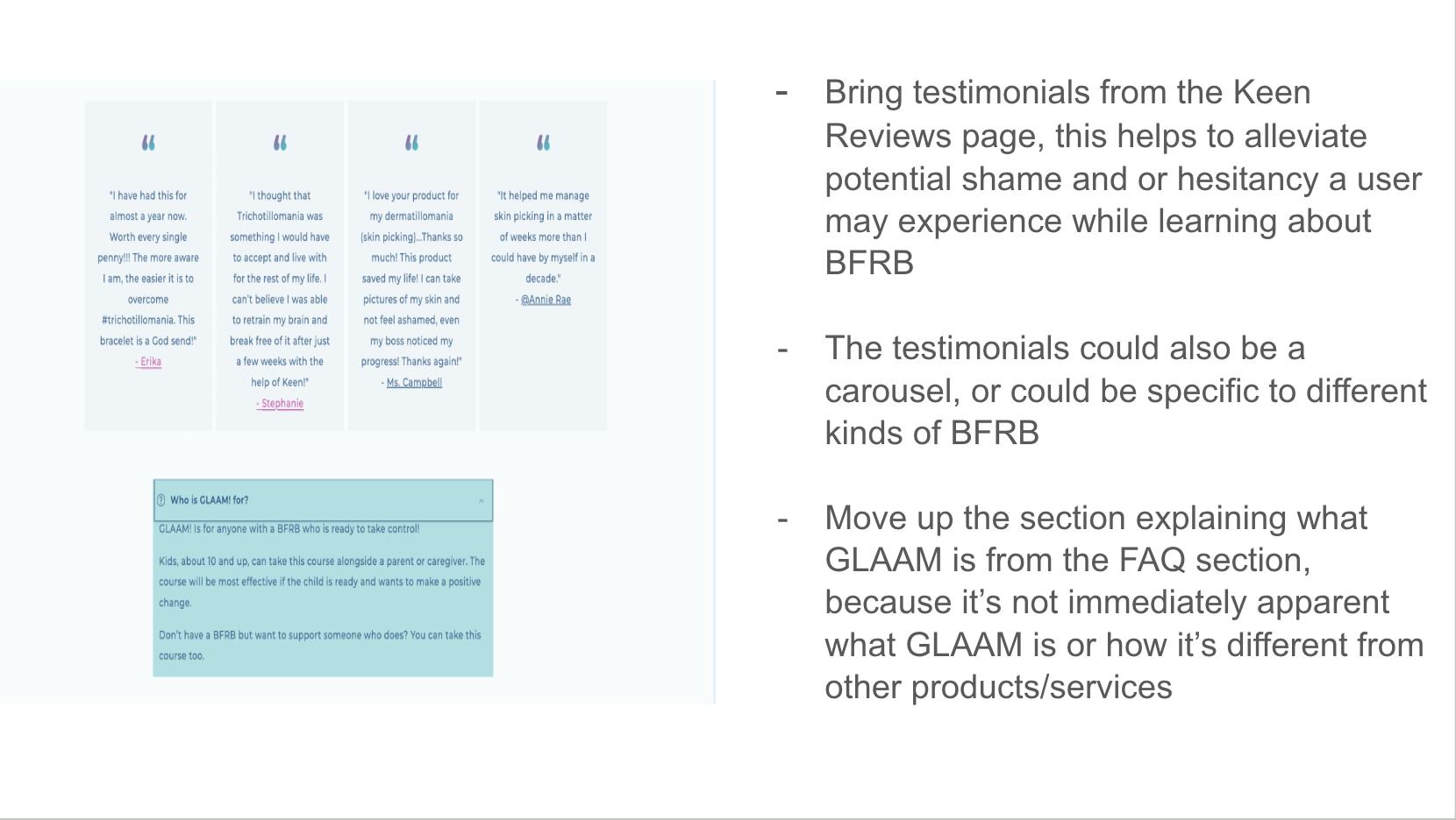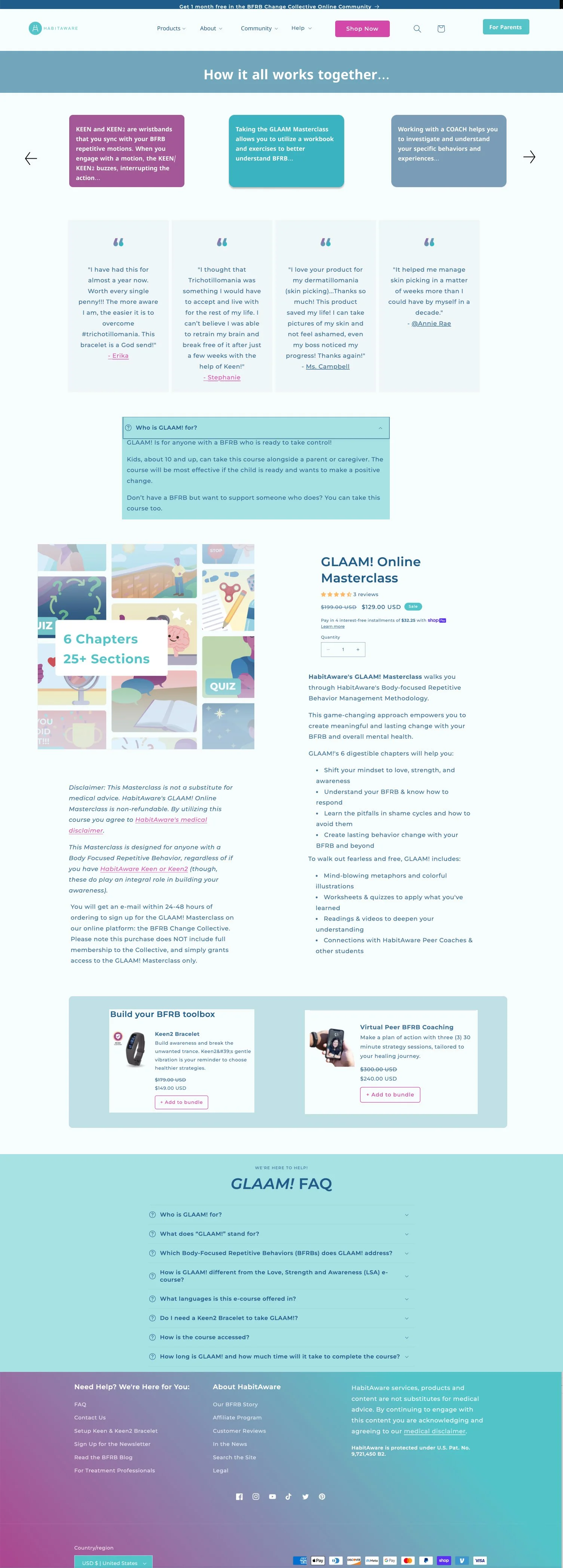 Our client wanted to make sure that their values were clearly represented in their website, especially the personal connection to BFRB and how meaningful the product and services can be for users.