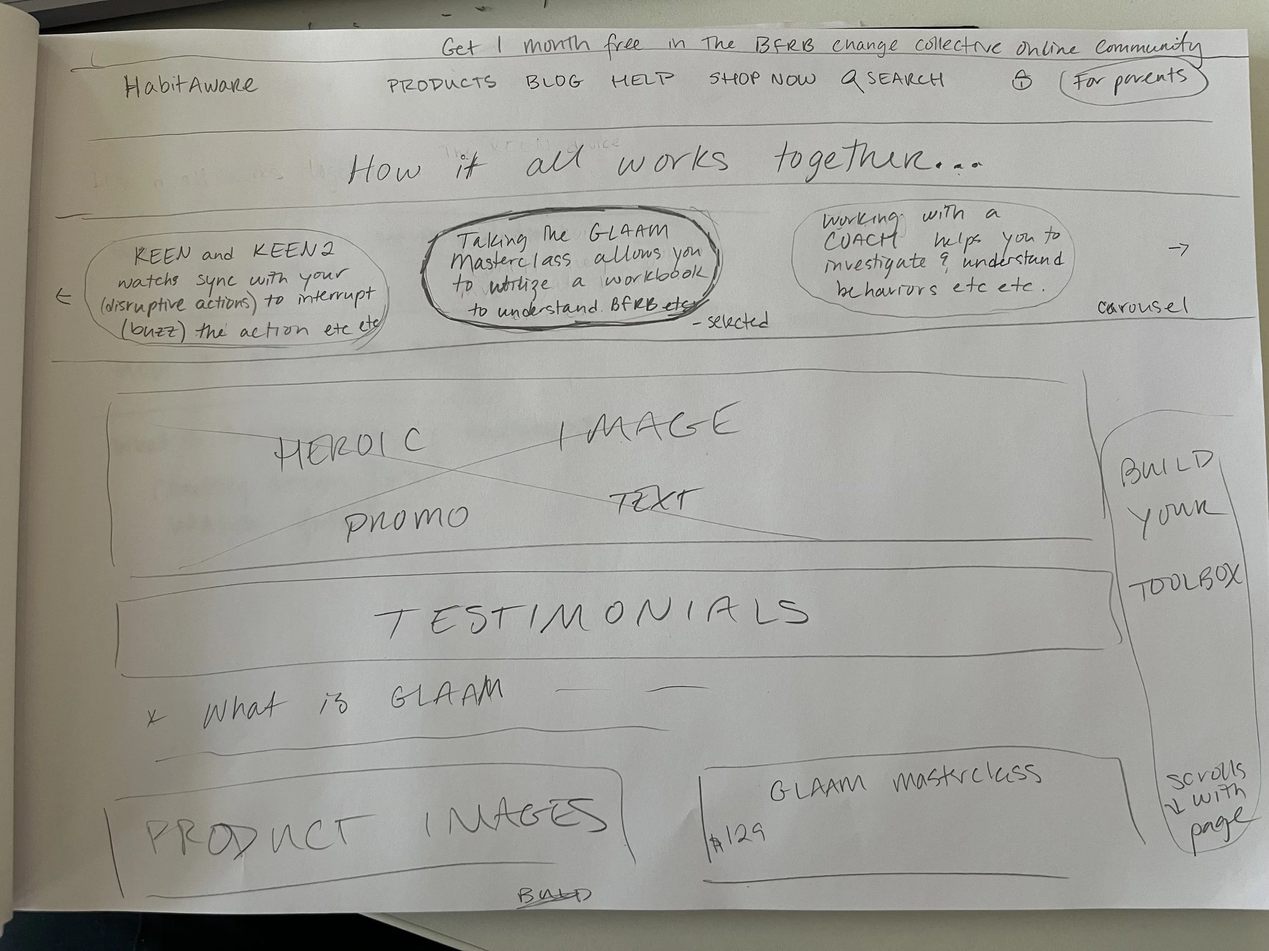 After analyzing the website, I sketched some ideas for redesigning the GLAAM Masterclass page.