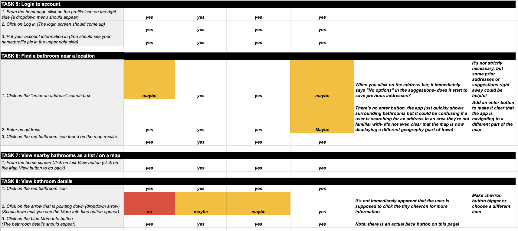 An excerpt from a cognitive walkthrough of twelve tasks a user might take. As you can see, no major issues arose, but when we went through the same tasks with a user, it became apparent where there’s room for improvement in the app.